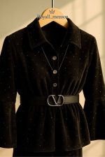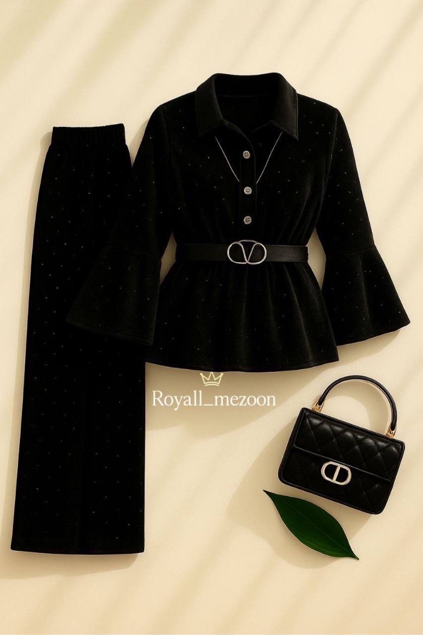ست مخمل زنانه مجلسی با طراحی خاص و پارچهی لطیف و باکیفیت، مناسب استایل شیک پاییز و زمستان.