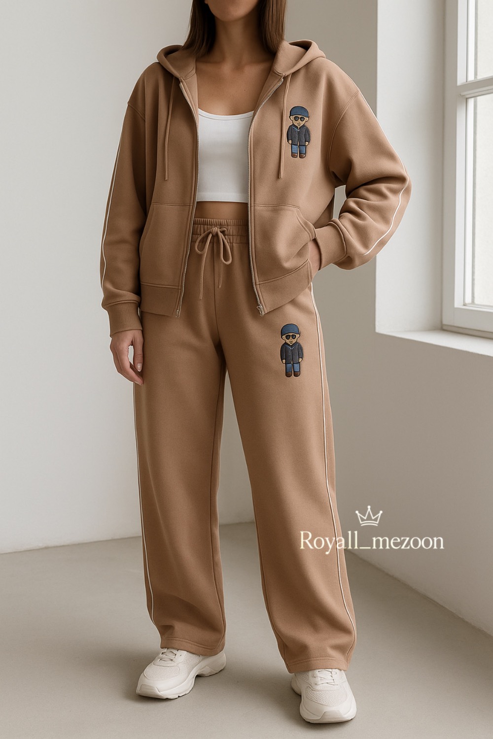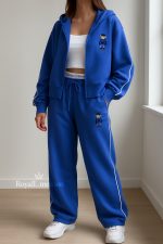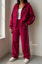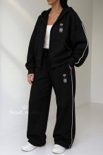 این ست اسپرت زنانه مخمل، با طراحی خاص و جزئیات راهراه سفیدش، ترند جدید استایل خیابونی برای پاییز و زمستونه 🍂